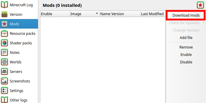 - Select the "mods" tab and click "Download mods"