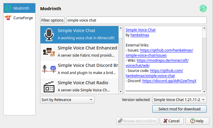- Find the "Simple Voice Chat" mod and add it: